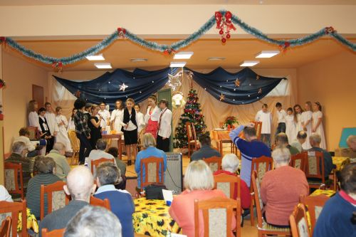 Z okazji zbliżających się Świąt Bożego Narodzenia gościliśmy w naszym domu uczniów z Zespołu Szkolno-Przedszkolnego z Bedonia. Jak co roku zachwycili nas swoją pomysłowością i aktorstwem. Uczniowie wraz z opiekunami przygotowali spektakl mówiący o sposbie spędzania wieczerzy wigilijnej w dwóch różnych domach (zamożnych i biednych). Dzięki przedstawieniu mogliśmy spostrzec różnicę między tymi dwoma światami. Dziękujemy tym młodym ludziom i zapraszamy do nas częściej.