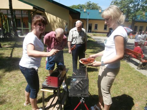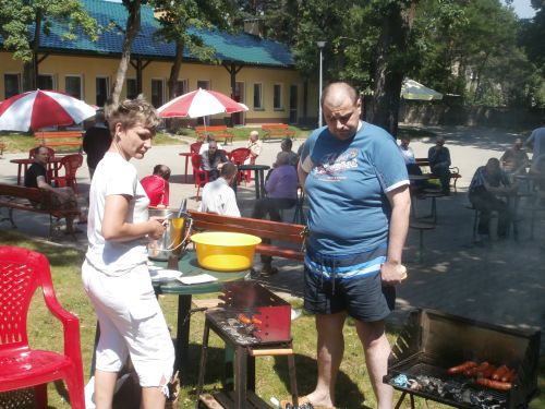 Wakacyjny piknik uczciliśmy wspólnym plenerowym grillowaniem. Towarzyszyła nam przyjazna i słoneczne aura. Oprócz kiełbasek, które samodzielnie przygotowaliśmy dopiekaliśmy pyszny wiejski chlebek. Kiedy nasze brzuszki już się nasyciły, szturmem ruszyliśmy w tany. Towarzyszyła nam muzyka folk, disco-polo, regge. Nie tylko posililiśmy się pysznymi kiełbaskami, potańczyliśmy ale także opaliliśmy się. To był naprawdę przepiękny wakacyjny dzień.